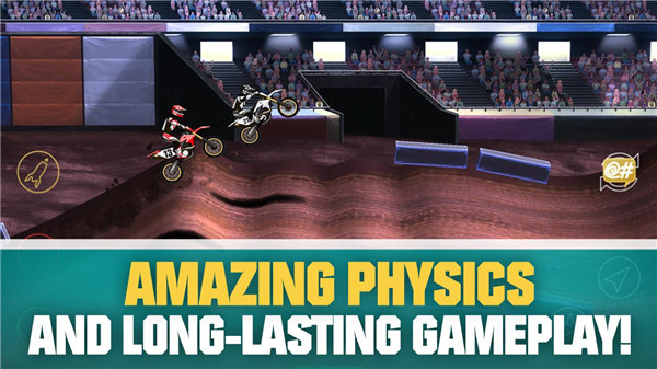 1、在飞跃摩托车2游戏中,不同的摩托车驾驶模式让您竞争随机选择的骑手;