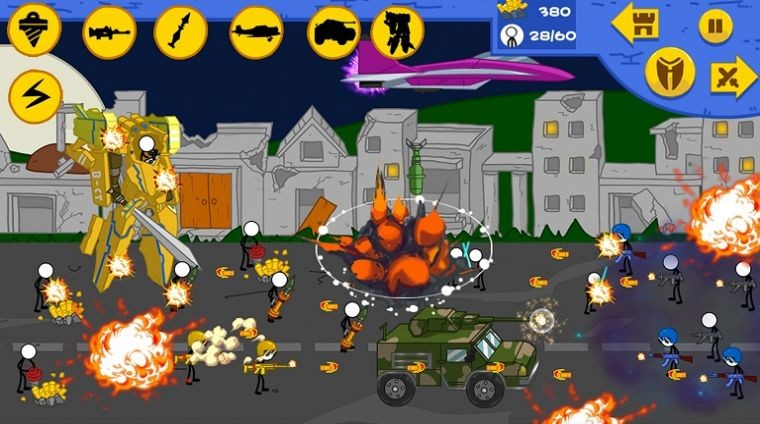 2、火柴人前进挑战游戏的世界中扮演指挥官,灵活组合不同的人手,战略取胜。