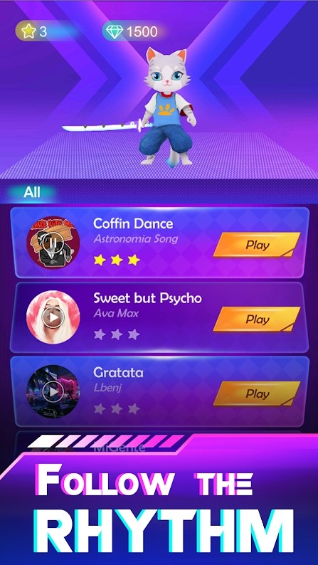 音乐节奏游戏简单上手,歌曲很多,立志成为音乐大师。 不断更新,3D图形,总有喜欢的歌曲,酷炫刺激的体验。