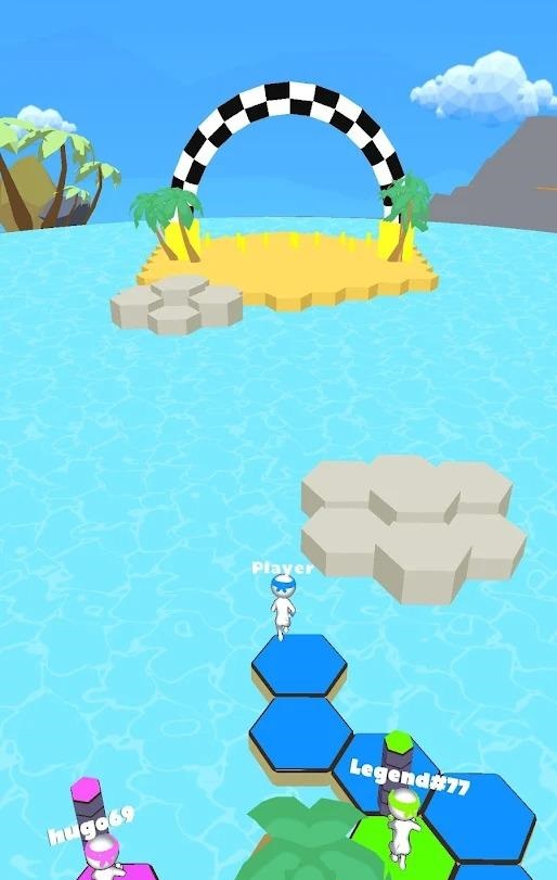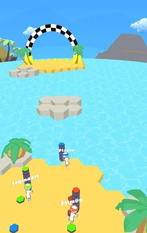这是一款可以与其他玩家一起进行速度比赛的游戏,在《登岛速度赛》游戏的每一局我们身上的颜色都是不同的,玩家需要在游戏中收集它们,并将它们铺在海面上,想终点奔跑。游戏的玩法非常的简单,但是非常的有趣,而且每一局的时长受是比较短的,可以随时上线挑战哦!