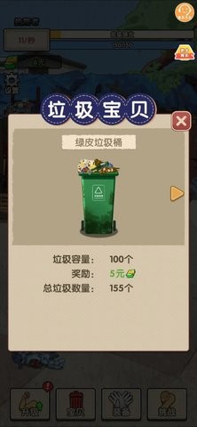 1、点击屏幕寻找垃圾桶,拾取垃圾可以获得金币,助你成为垃圾收集王;