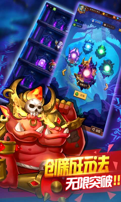 1、招募属于自己的英雄,选择合适的培养、进阶方式,最大限度提升英雄的战斗力;