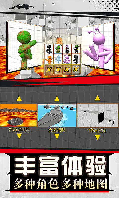 4、游戏中有众多的火柴人角色可供选择,每个角色都有不同的技能和特点。玩家可以根据自己的喜好选择合适的角色进行游戏。每个角色都有独特的技能和必杀技,玩家可以通过不断解锁和升级来提升角色的实力和能力。