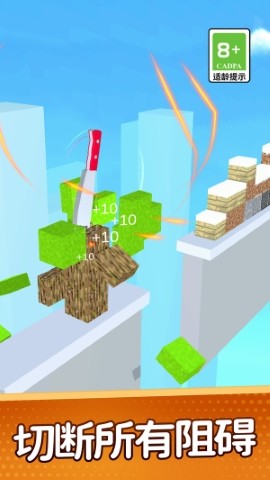 在游戏中,你将面对各种各样的障碍物和挑战,例如移动的障碍、旋转的刀片等,需要灵活运用切割技巧来应对,你还可以收集游戏中的道具和奖励,提升自己的切割能力,解锁更多的游戏内容和特色。
