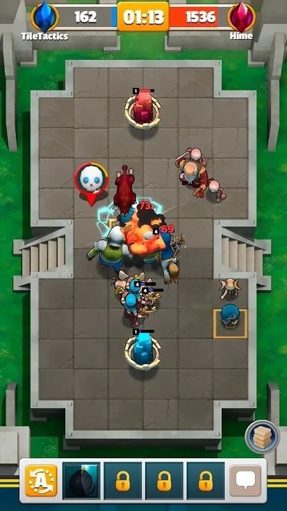 画面任务刻画细腻的《地砖竞技场》,也就是在游戏中玩家所能看到的角色都是非常可爱的,毕竟是要方便玩家的控制,尤其是在大乱战,玩家是要能清晰的看到自己控制角色的血量,虽然是放置类游戏但是需要玩家学习的策略也是非常丰富的,毕竟游戏中玩家的目的就是为了获得胜利。