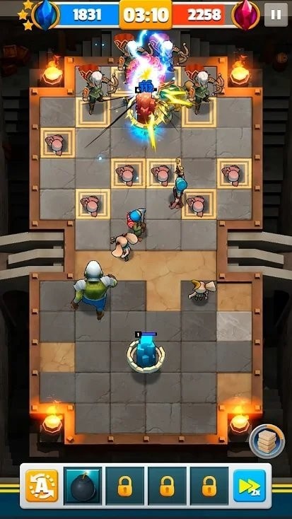 1、地砖竞技场游戏为玩家提供更有趣的冒险,进行多种游戏战斗,消灭所有敌人。