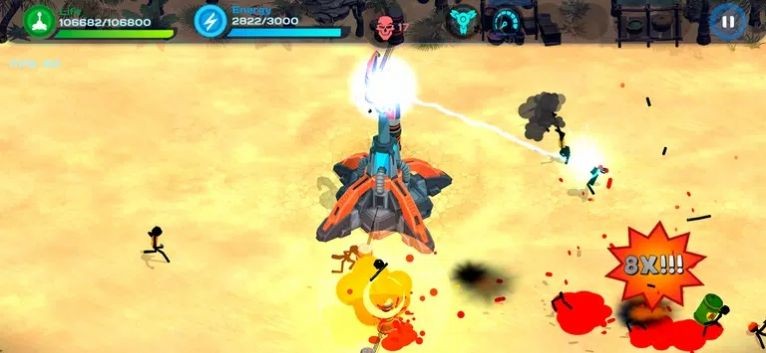 2、特斯拉火柴人战争游戏中不同武器的音效完全不同,在这里可以体验最刺激的冒险战斗。