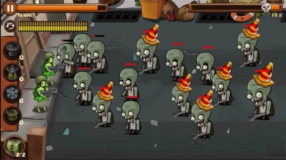 1、在萌僵尸战争游戏中,齐心协力加强各种防御行动,完成阻挡僵尸攻击的任务。