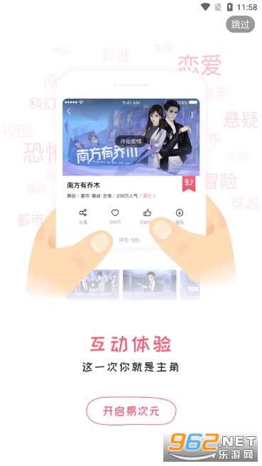 易次元有上千部互动文字作品,颠覆传统小说、漫画阅读方式,精美画风、多支线多结局浸入式剧情,给用户全新阅读体验。