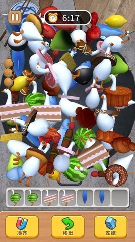 1、消除所有鹅,获得所有奖励,游戏采用配对消除玩法;