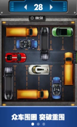 1、游戏中,各种车辆被放置在一个狭小的空间内,所有车辆必须停在原地。