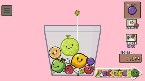 2、在有限的空间内合成更大的水果,如最大的水果,以达到特定的关卡;