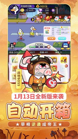 2、高度灵活的角色自定义功能,可以根据自己的审美喜好选择鸭子形象和武器组合;