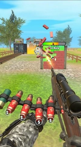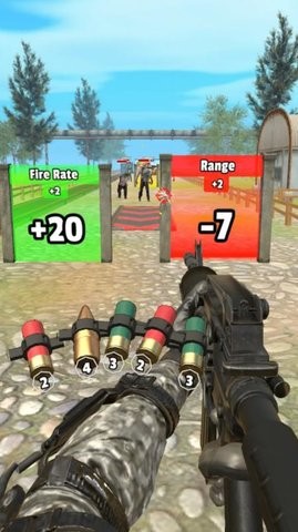 3、玩家点击屏幕射击,消灭敌人并向终点移动,途中可补充子弹并击中目标,获得额外奖励。