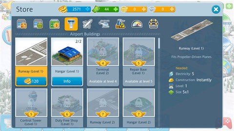 3、建立各种机库和跑道,以容纳更多飞机,增加玩家收入。