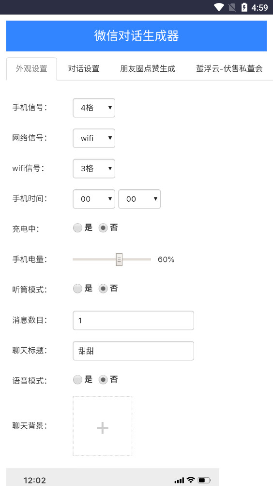在这个数字化的时代,微信聊天模拟器以及抖音微信聊天记录视频制作工具已经如同艺术家的画笔,为我们带来了无限的创意空间。它不仅仅是一款模拟微信聊天的高级工具,更是一扇通往个性化沟通世界的窗口。用户只需简单操作,便可根据自己的需求添加不同的虚构角色,进行一场场精彩纷呈的对话。
