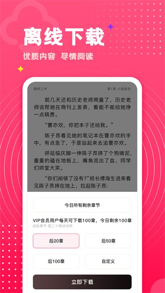 3.离线阅读功能:用户可以将喜欢的小说下载到本地,随时随地离线阅读,无需担心网络问题;