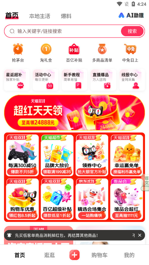 ●每日上新,百万张隐藏优惠券,更有超高值优惠券限时抢,享独家优惠,少花钱多购物!