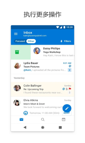 安卓微软邮箱免费下载是一款功能强大且专业的邮件管理 APP。它为用户提供了高效、安全的邮件收发服务。无论是商务沟通还是个人联络,微软邮箱都能满足你的需求。其简洁大气的界面设计,让操作更加便捷。强大的搜索功能和分类管理,帮助你快速找到重要邮件。感兴趣的小伙伴赶快下载最新的软件版本,开启高效的邮件管理之旅吧。