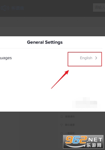 4、默认显示为“English”,点击进入。