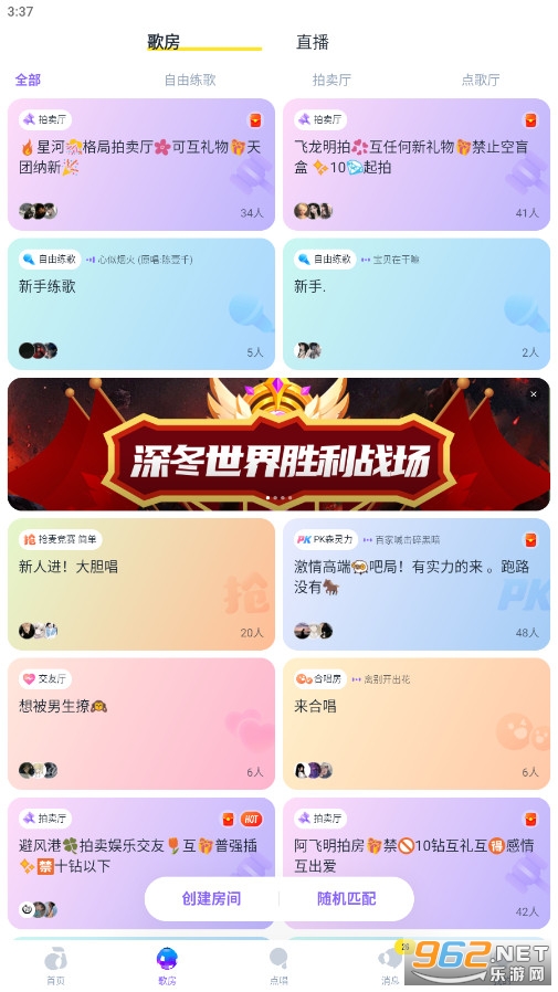 安卓《回森》是一款由北京晨钟科技有限公司打造的手机k歌软件,让你的音乐不再孤单。软件中你可以进入一个个不同的房间进行演唱,还有着多样的玩法等待着你,超多好听的歌曲,享受k歌的乐趣,现在就来试试吧!