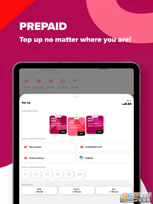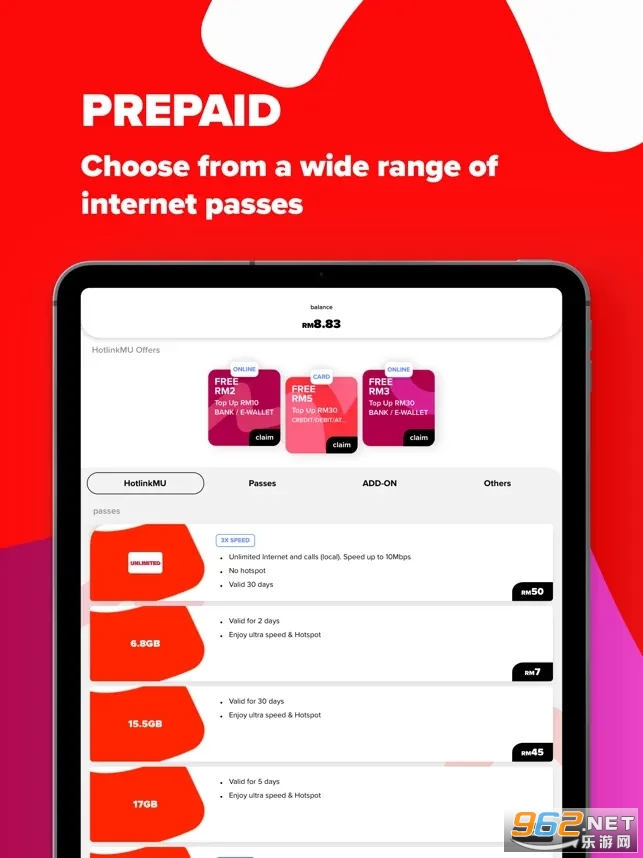 安卓《Hotlink安卓软件》马来西亚Maxis(Hotlink)流量套餐、延长有效期、国际漫游、国际通话,马来西亚Maxis公司旗下Hotlink预付费品牌推出的官方手机应用,通过软件进行充值,用户能够快速有效地延长其Hotlink预付费卡的有效期,确保通信服务不会因余额不足或有效期到期而中断。