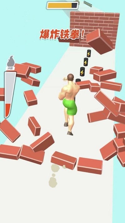 3、猛男冲冲冲3D游戏中超多的游戏关卡,不仅要粉碎墙壁,还要打倒强盗。