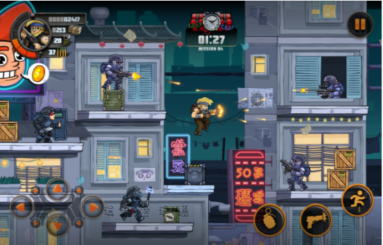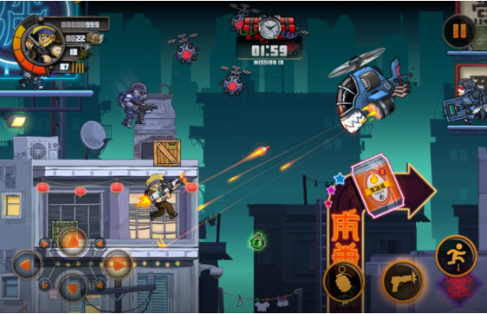 玩家可以在《金属士兵3》游戏中使用各种武器,并且灵活的走位在游戏中完成一系列的游戏对战关卡。虽然游戏的画面看起来非常的简单,但是每一个关卡中都加入了不少的游戏元素,让整个游戏拥有非常丰富的游戏内容,让玩家爱不凑手。