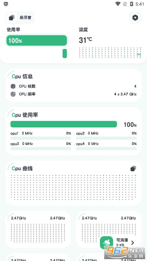 CPU 监测提供一键清理加速功能,随时方便的清理内存。