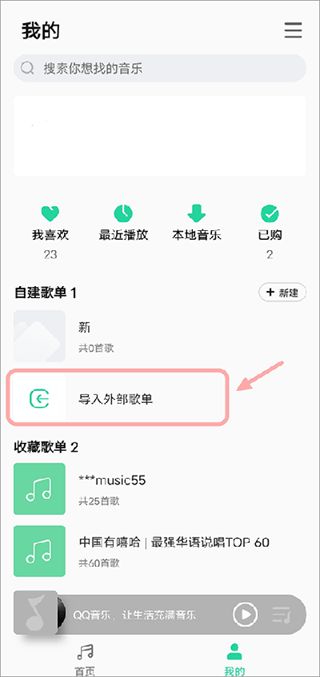 1、首先登录你的账号,在我的界面点击“导入外部歌曲”