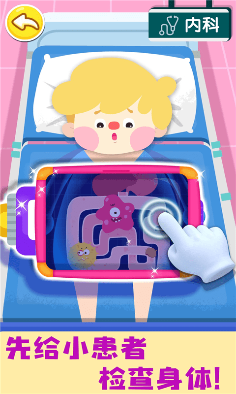 2、游戏中有很多治病的小关卡,让孩子体验医生的角色扮演。