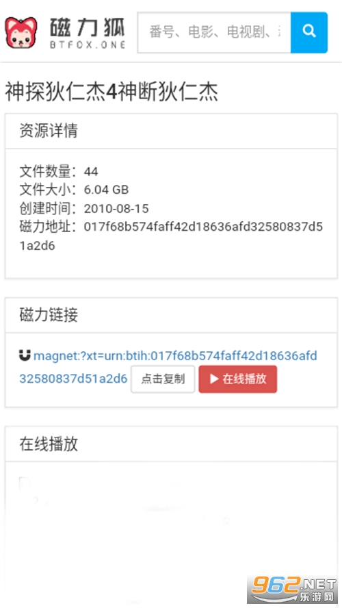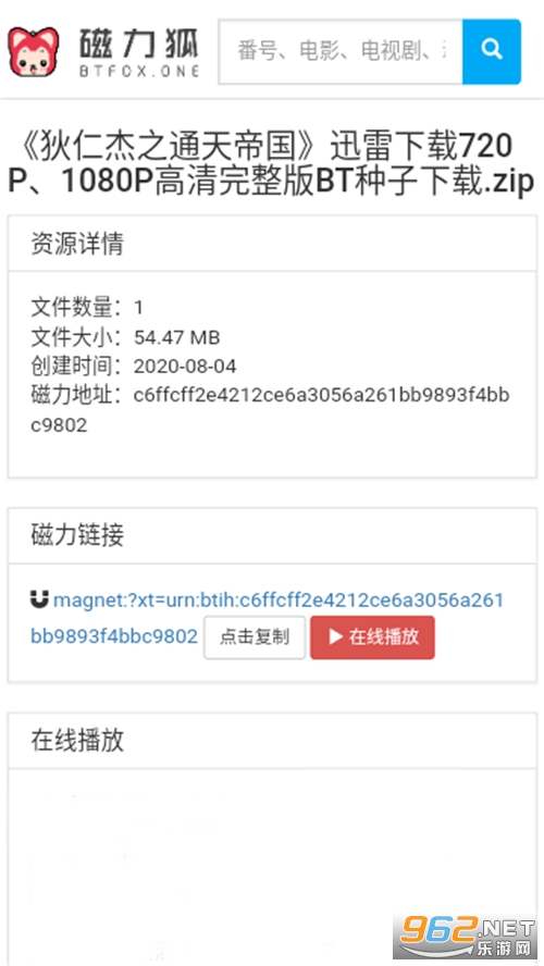 其次,"磁力狐" 提供了清晰的资源信息和种子质量评分,用户可以在搜索结果中直观地看到资源的大小、格式、下载速度等信息,帮助用户快速选择合适的资源进行下载。同时,"磁力狐" 还支持磁力链接的一键复制和分享功能,让用户可以方便地分享资源给他人或在其他下载工具中使用。