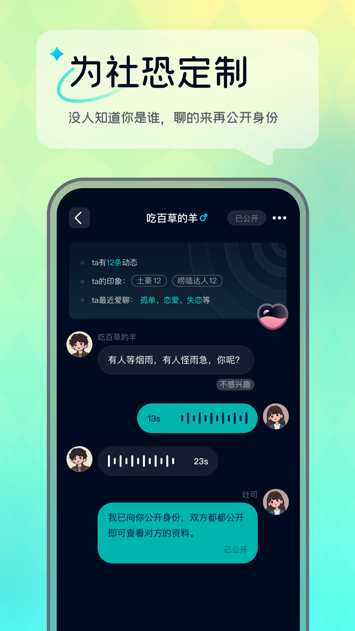 4.与其他社交软件不同的是,回音聊天不支持文字聊天和图片聊天,所有交流都是通过语音进行的。