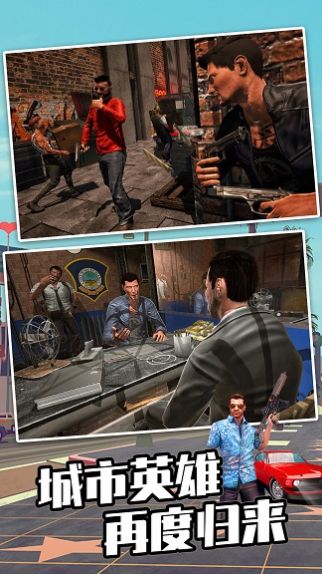 2、迈阿密英雄3D游戏中英雄将在城市中声名鹊起,你的角色拥有惊人的超能力。