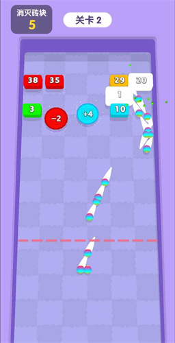 2、玩家可以在游戏中手指操纵齿轮启动弹球,使弹球顺利撞过不同的气球,完成挑战。