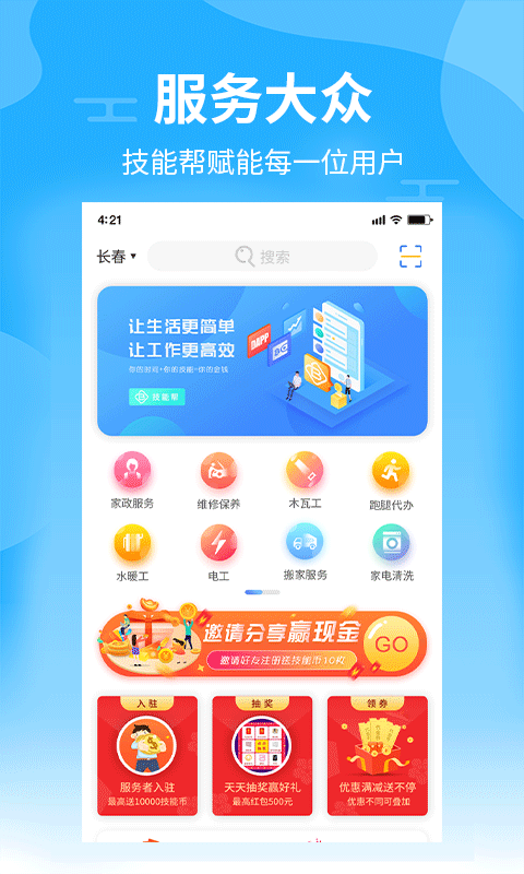 3.分享技能帮助百万用户的平台,携手引领中国服务行业进入优质快速服务新时代。