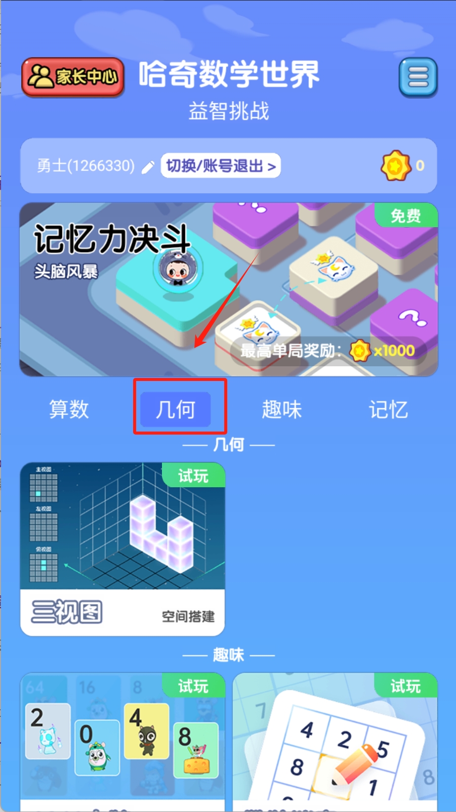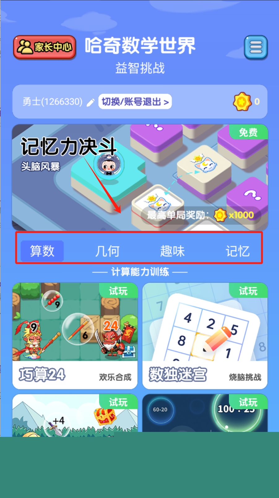 1、界面选择“算数”、“几何”等模块,点击“巧算24”开始。