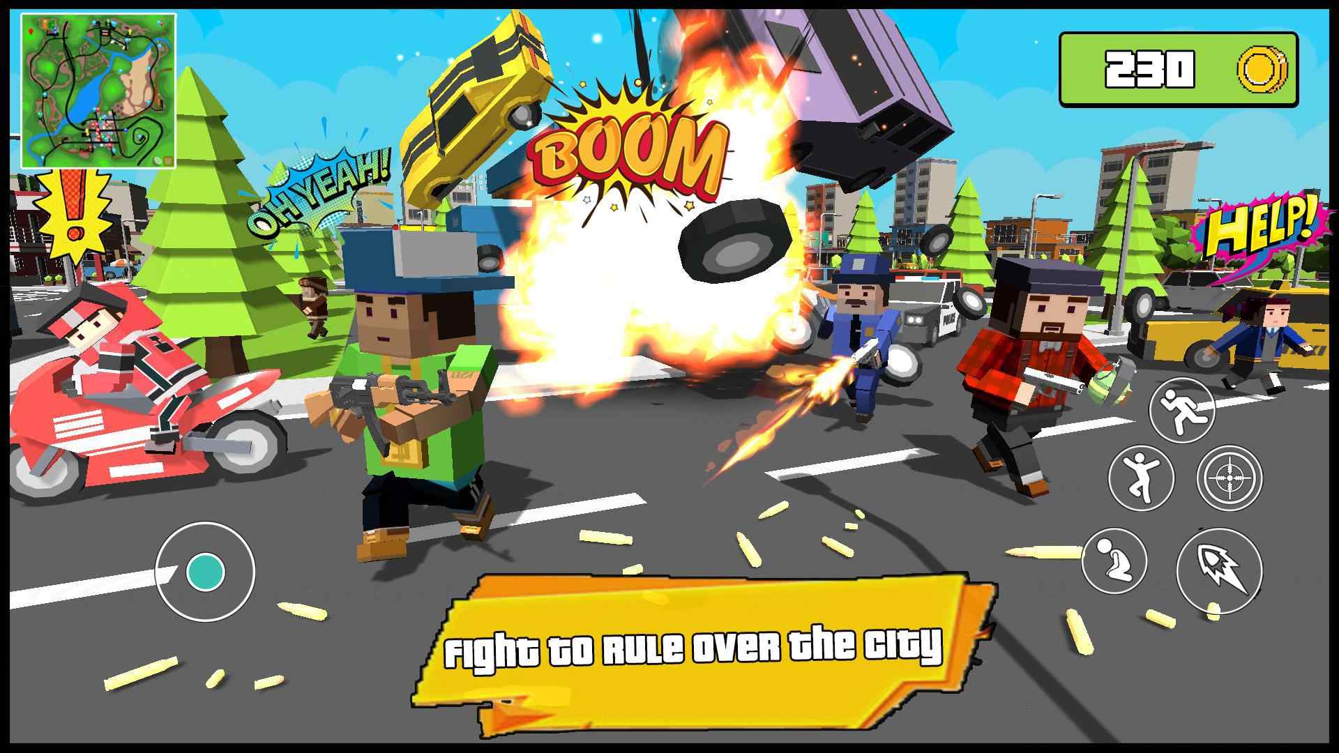 1、经典的射击模式开始于像素城黑帮和警察之间的激烈战斗;