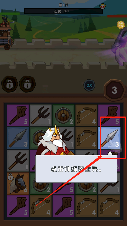 2、点击屏幕下方,训练士兵。