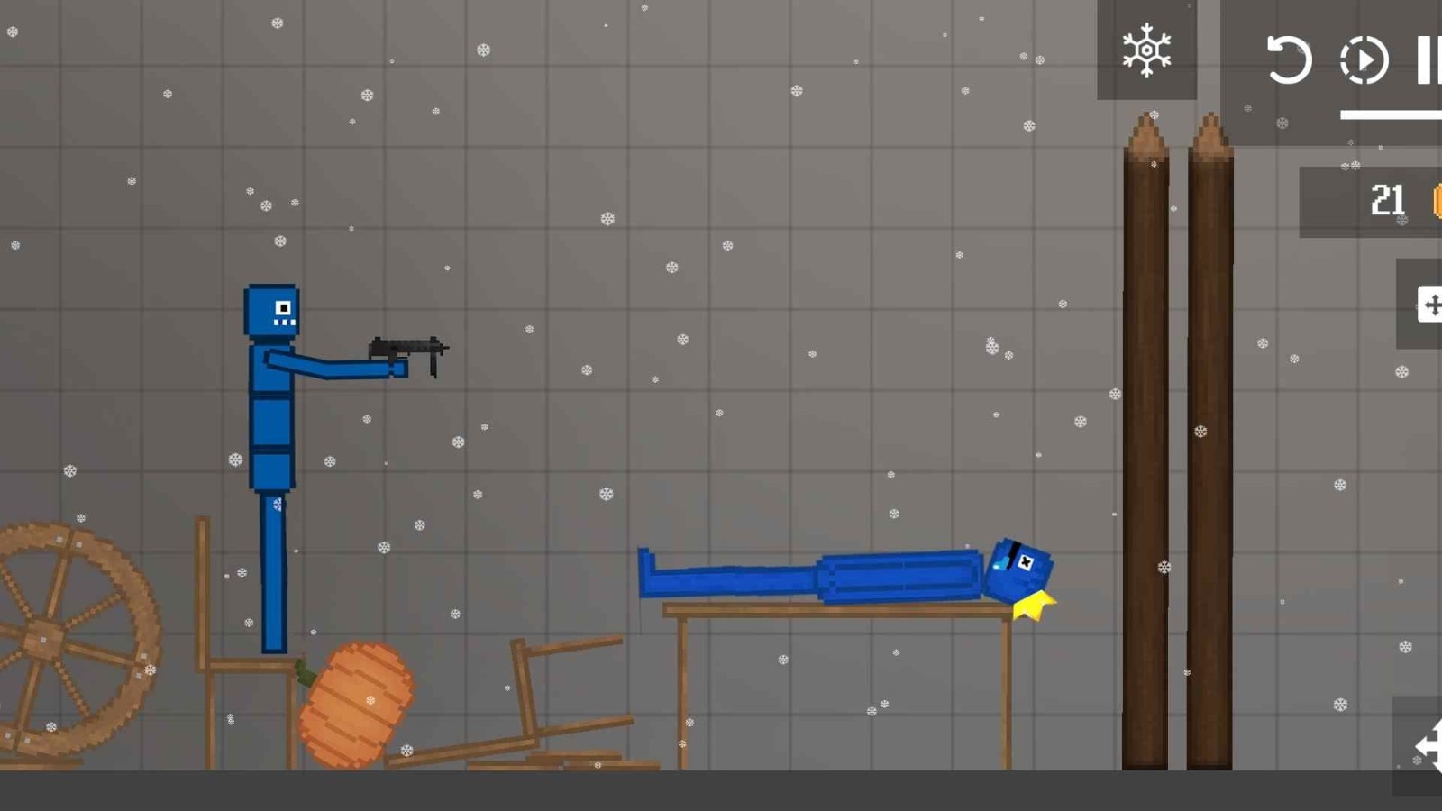 1.没有限制更自由。用各种武器疯狂攻击西瓜人可以获得积分。