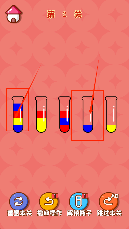 2、规划倒水顺序:根据液体颜色与试管容量,在脑海中构思倒水步骤,优先处理易于归位的液体。
