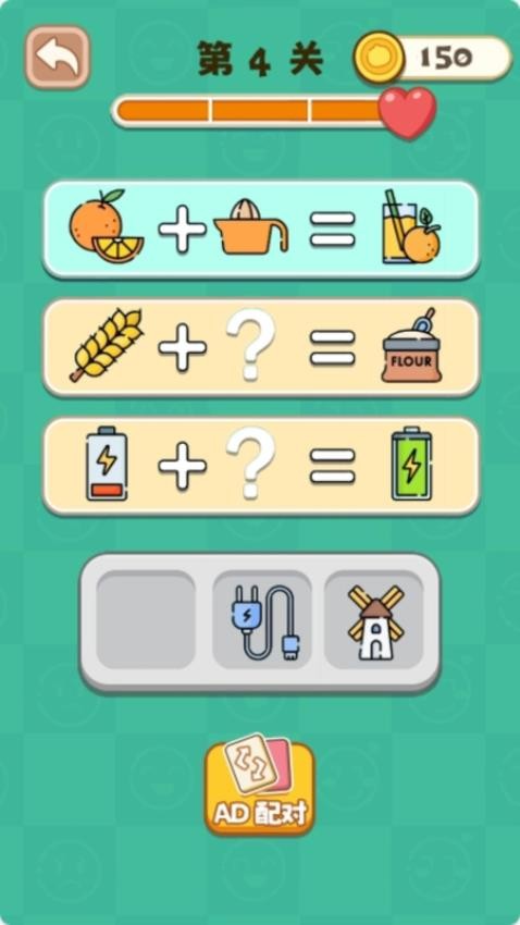 3、寻找配对规律:面对配对关卡,仔细观察物品特征,挖掘内在规律,选出正确答案。