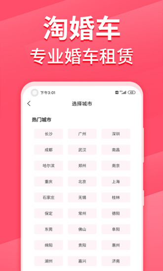 在这个软件中你可以找到最合适的婚车进行租借,我们为大家所准备的婚车车型都是根据全国大数据分析来为大家精心挑选的,在国内任意城市都可以。