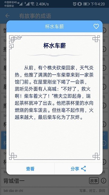 3、互动学习模式结合趣味答题与闯关挑战,将枯燥的成语记忆转化为游戏化体验,激发用户持续学习的兴趣与动力。