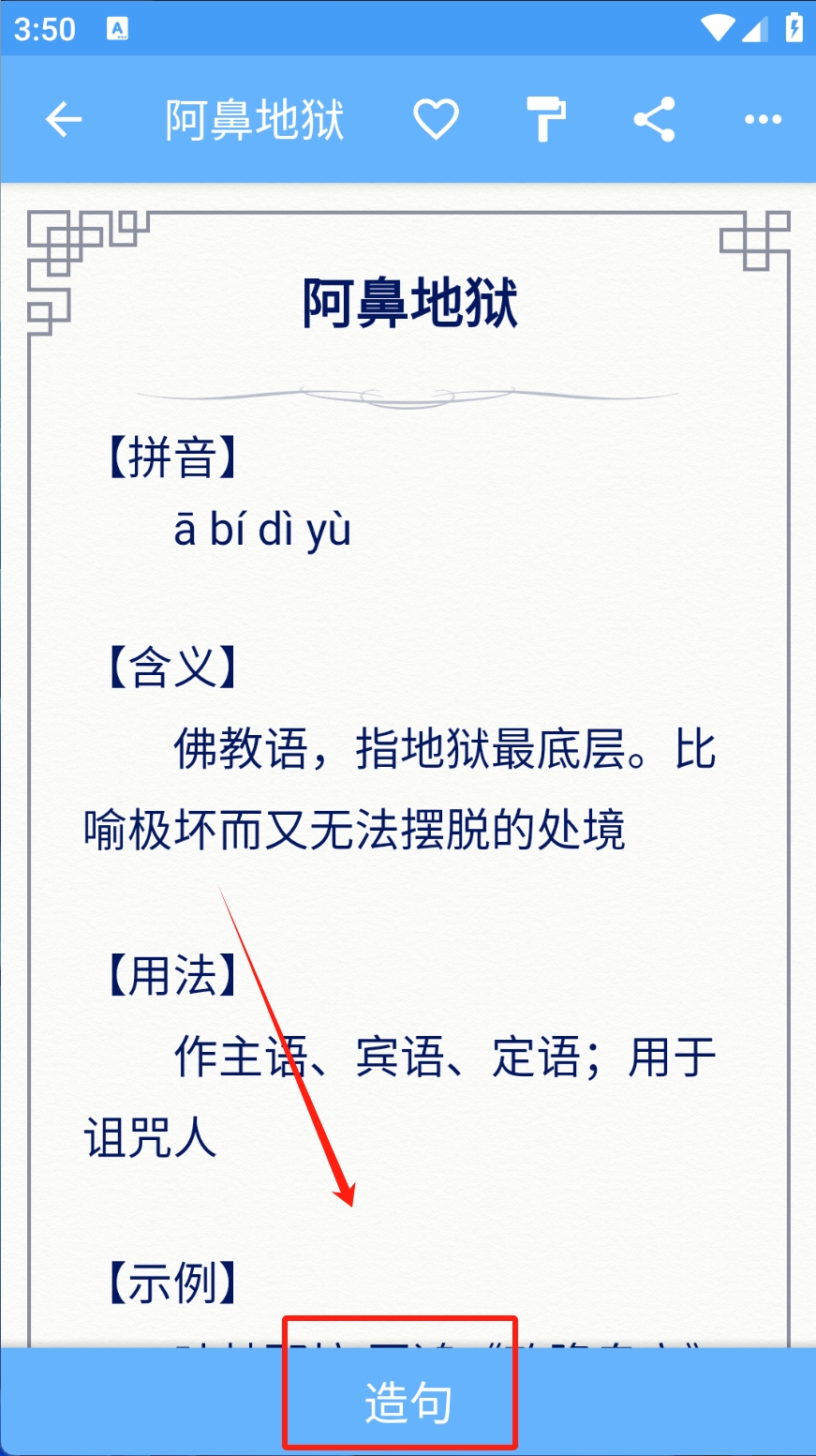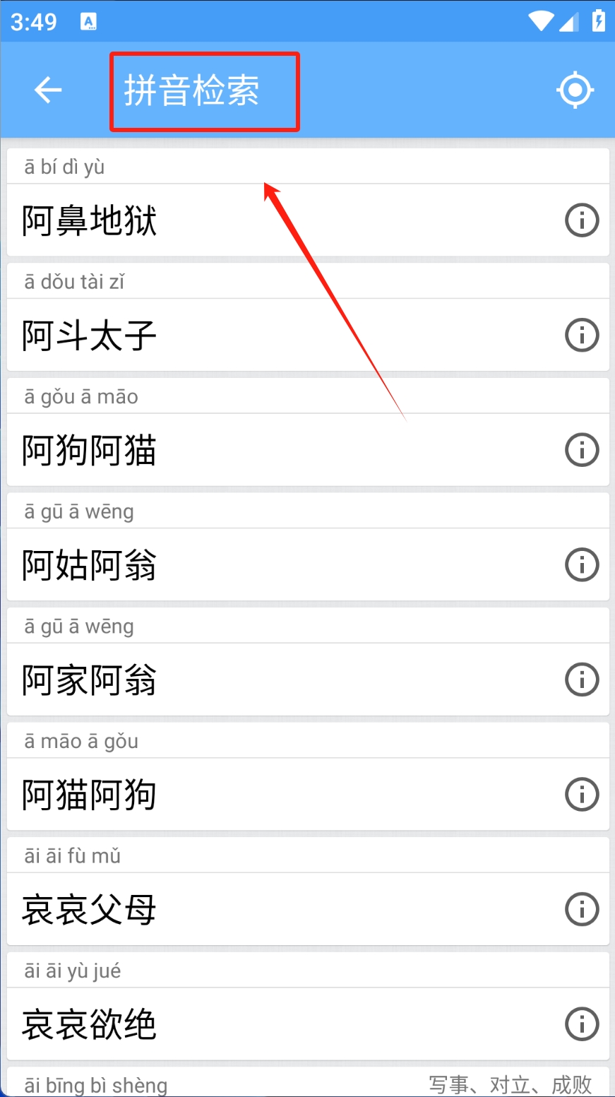 2、输入拼音“ā bí dì yù”,可找到“阿鼻地狱”。
