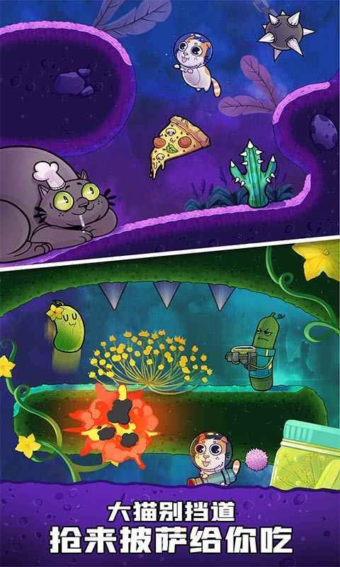 3、玩法控制猫连续发射火箭,火箭会产生一个向后的推力。