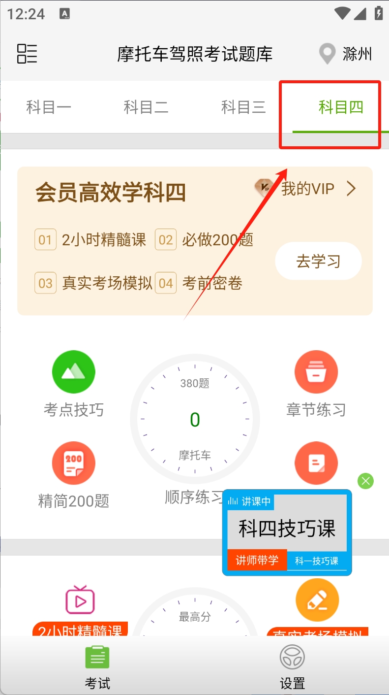 3、开始学习:点击“去学习”按钮,开始科目四的学习。