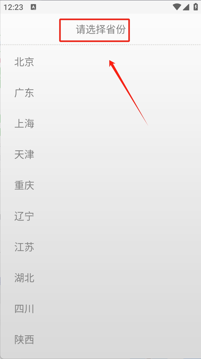 1、选择省份:点击“请选择省份”按钮,选择所在省份。