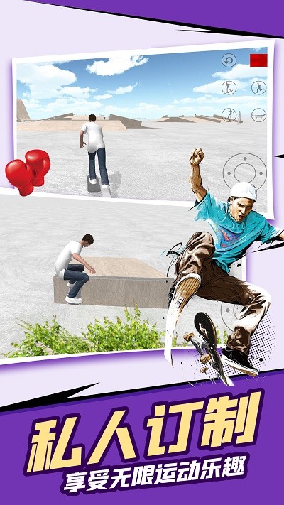 2. 自定义滑板人物:游戏中玩家可以自定义滑板人物的外貌、服装、滑板板型等,让玩家打造属于自己独特的滑板人物形象;