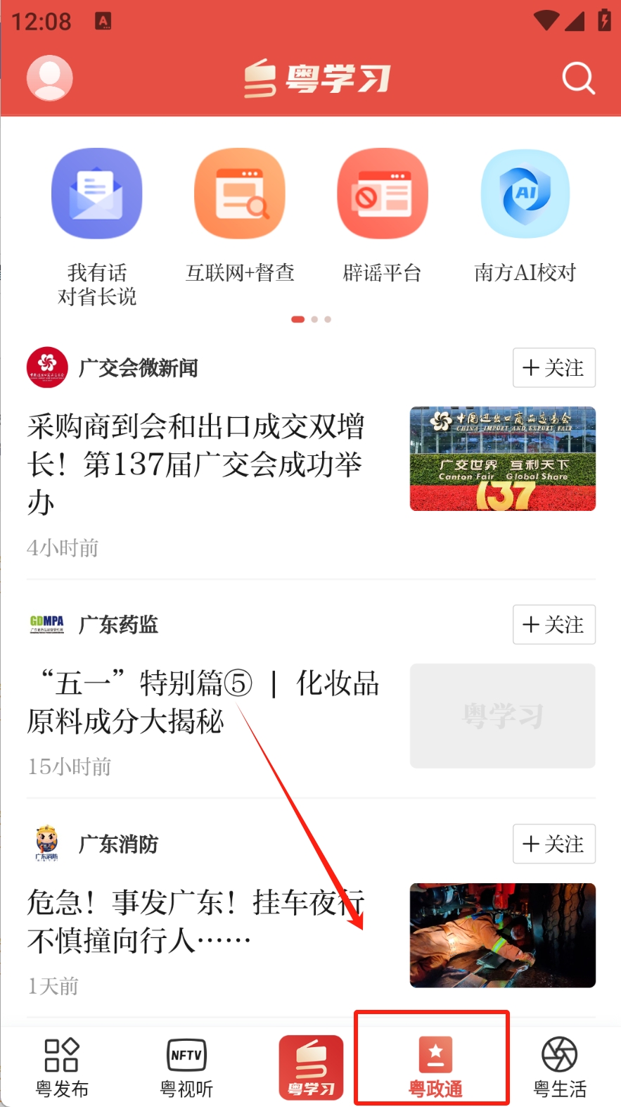 3、查看粤政通:点击“粤政通”图标,访问相关政务服务。